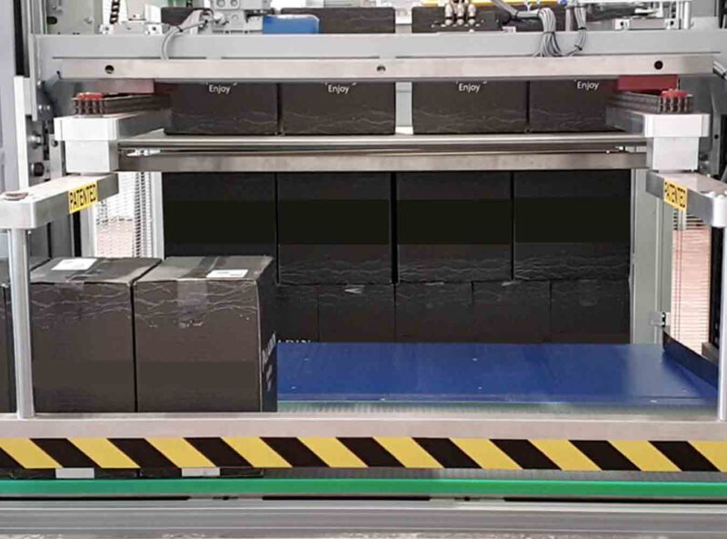 Paletizador automático com alimentação de caixas